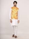 Silk Blend Kurta Pajama with Satin Print Modi Jacket Set