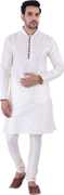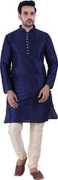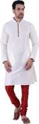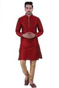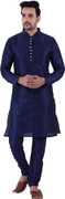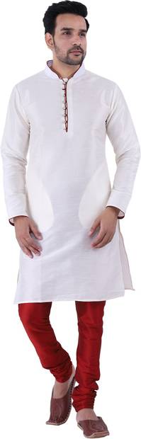 SADREE as a brand brings you quality and affordability. We take pride in our commitment to maintain quality standards in each piece manufactured by us. Look your ethnic best wearing this kurta pyjama set for men from the fashion house of SADREE .Made from Dupion Silk, this regular-fit kurta pyjama set comprises a full-sleeved kurta and pyjama to complete your look. Team this outfit with embroidered mojris and rock the party that you attend.