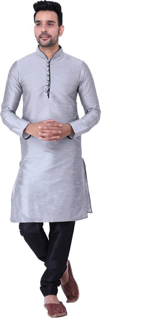 SADREE as a brand brings you quality and affordability. We take pride in our commitment to maintain quality standards in each piece manufactured by us. Look your ethnic best wearing this kurta pyjama set for men from the fashion house of SADREE .Made from Dupion Silk, this regular-fit kurta pyjama set comprises a full-sleeved kurta and pyjama to complete your look. Team this outfit with embroidered mojris and rock the party that you attend.