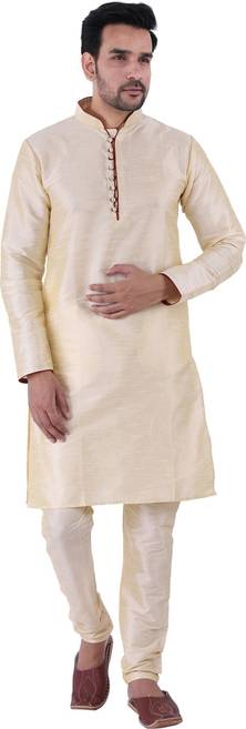 SADREE as a brand brings you quality and affordability. We take pride in our commitment to maintain quality standards in each piece manufactured by us. Look your ethnic best wearing this kurta pyjama set for men from the fashion house of SADREE .Made from Dupion Silk, this regular-fit kurta pyjama set comprises a full-sleeved kurta and pyjama to complete your look. Team this outfit with embroidered mojris and rock the party that you attend.