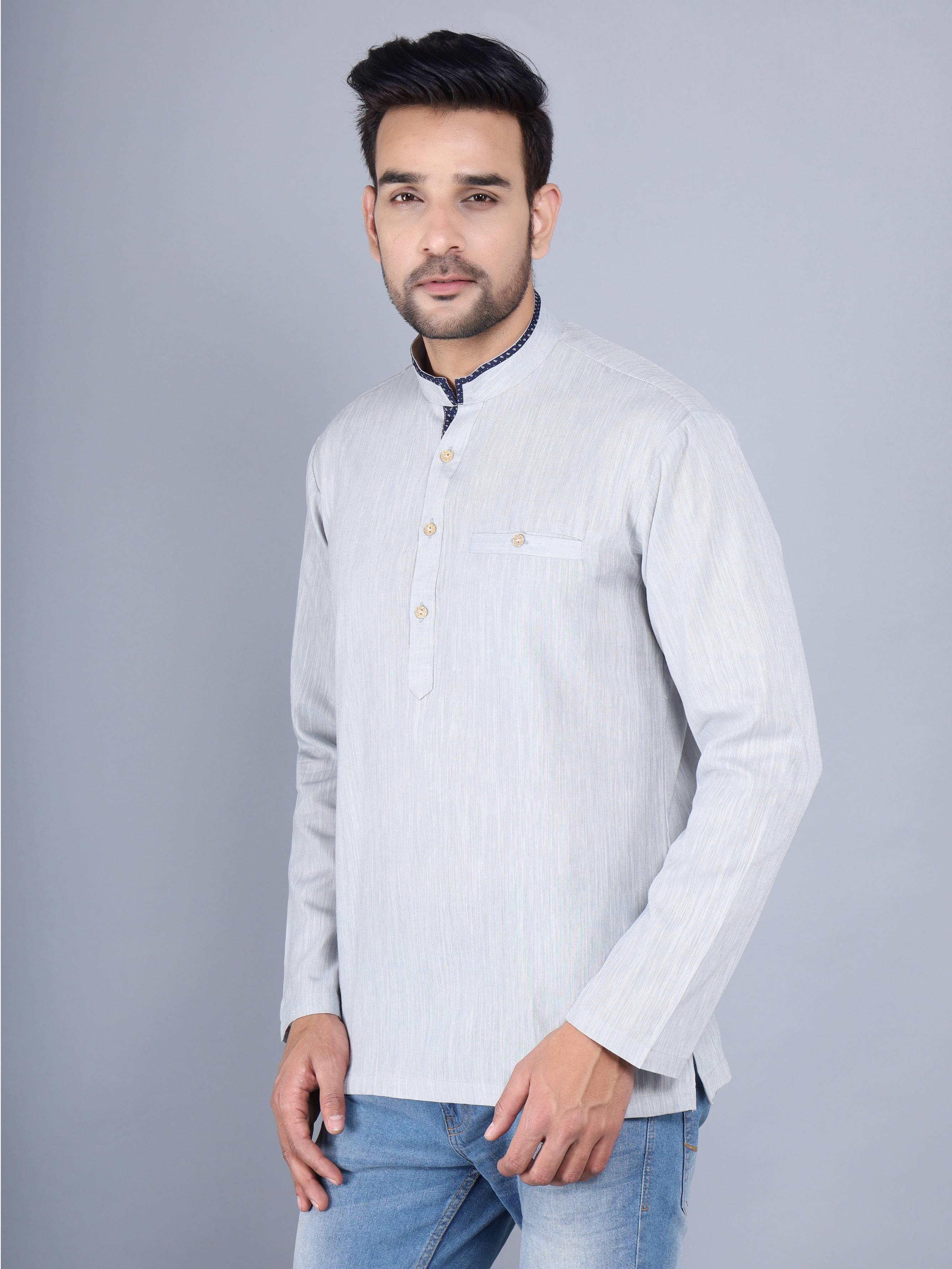 Men Solid Cotton Blend Asymmetric Kurta (Multicolor)