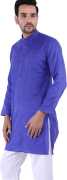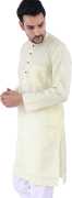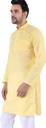 Sadree Men Solid Cotton Blend Asymmetric Kurta (Yellow)