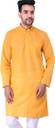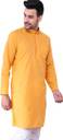 HUZUR as a brand brings you quality and affordability. We take pride in our commitment to maintain quality standards in each piece manufactured by us. Look your ethnic best wearing this kurta set for men from the fashion house of HUZUR .Made from Cotton, this regular-fit kurta pyjama set comprises a full-sleeved kurta to complete your look. Team this outfit with embroidered mojris and rock the party that you attend.