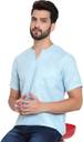 HUZUR Men Solid Cotton Blend Straight Kurta (Blue)