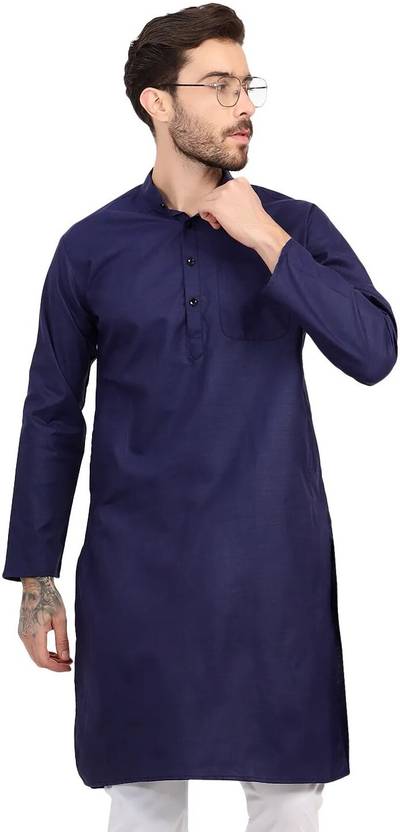 Men Solid Cotton Blend Straight Kurta (Blue)
