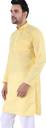 Sadree Men Solid Cotton Blend Straight Kurta (Yellow)