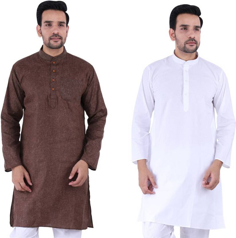 Mens SolidmColor Plain Knee Length Combo Set Kurta Only