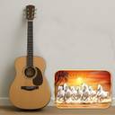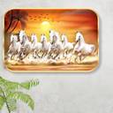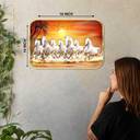 saf 7 Running Horses Sparkle Glossy Round Golden Framed Large Painting Digital Reprint 18 inch x 14 inch Painting (With Frame)