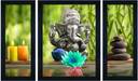 saf Ganesha Set of 3 UV Textured Multi-Effect Digital Reprint 22 inch x 14 inch Painting (With Frame, Pack of 3)