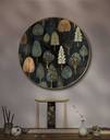 saf Large Round Nature Art Wall Painting with golden frame Vinyl Sparkle laminated Digital Reprint 16 inch x 16 inch Painting (With Frame)