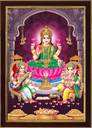 saf Lord Lakhmi Ganesh Saraswati Sparkle Coated Digital Reprint 13.25 inch x 9.25 inch Painting (With Frame)