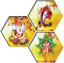 saf SET OF 3 HEXAGON GANESHA Embossed 17 inch x 17 inch Painting (Without Frame, Pack of 3)