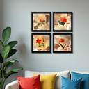 saf SET OF 4 FLORAL Digital Reprint 19 inch x 19 inch Painting (With Frame, Pack of 4)