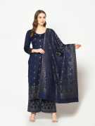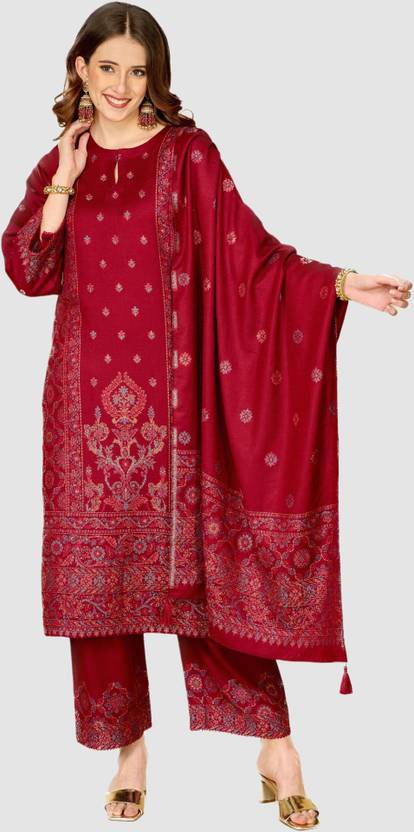 This pretty piece is a fairy tale that begins to unfold as you reveal your beauty in it. Look ethnic in this dress material. This acro wool woven suit is beautifully adorned with woven work comes along with acro wool bottom and dupatta, making it appear more adorning. Women can buy this suit to wear for their upcoming festivals, homely functions, parties, kitties, weekends get together. Get this unstitched suit stitched according to your fit and comfort. Team it with stylish accessories to make your looks more beautiful. Note:- The actual product may differ slightly in color and design from the one illustrated in the images when compared with a computer or mobile screen.