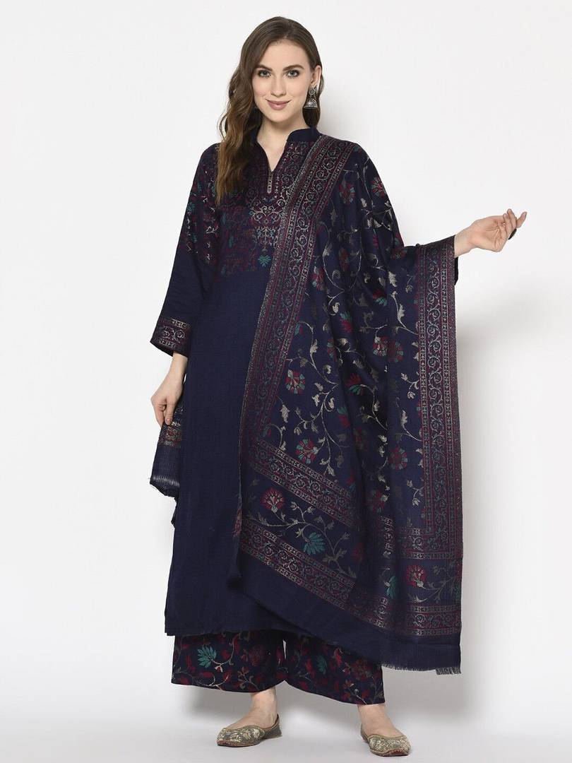 This pretty piece is a fairy tale that begins to unfold as you reveal your beauty in it. Look ethnic in this dress material. This acro wool woven suit is beautifully adorned with woven work comes along with acro wool bottom and dupatta, making it appear more adorning. Women can buy this suit to wear for their upcoming festivals, homely functions, parties, kitties, weekends get together. Get this unstitched suit stitched according to your fit and comfort. Team it with stylish accessories to make your looks more beautiful. Note:- The actual product may differ slightly in color and design from the one illustrated in the images when compared with a computer or mobile screen.