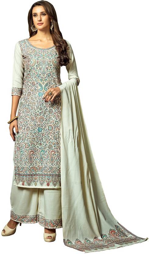 This pretty piece is a fairy tale that begins to unfold as you reveal your beauty in it. Look ethnic in this dress material. This acro wool woven suit is beautifully adorned with woven work comes along with acro wool bottom and dupatta, making it appear more adorning. Women can buy this suit to wear for their upcoming festivals, homely functions, parties, kitties, weekends get together. Get this unstitched suit stitched according to your fit and comfort. Team it with stylish accessories to make your looks more beautiful. Note:- The actual product may differ slightly in color and design from the one illustrated in the images when compared with a computer or mobile screen.