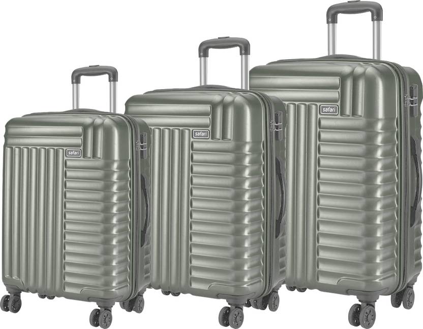 Hard Body Set of 3 Luggage 8 Wheels - Combat Hard-Sided Polycarbonate 5 Years Warranty Luggage 3 PC Set (55+65+77 cm) - Green