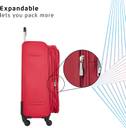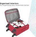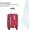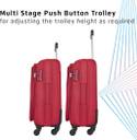 Expandable, 4 wheels, Fixed Combination Lock, Push Button Multi-Stage Trolley, Front pockets, Zipper, Sturdy Handle, Polyester Lining, 5 Years International Warranty, Light weight
