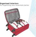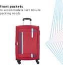 Expandable, 4 wheels, Fixed Combination Lock, Push Button Multi-Stage Trolley, Front pockets, Zipper, Sturdy Handle, Polyester Lining, 5 Years International Warranty, Light weight