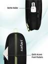 Padded shoulder straps, Padded back with mesh, Bottle holder, Front pocket, Printed, Padded handle