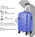 Scratch Resistant, Light weight, Fixed Combination Lock, 360 Degree Smooth Wheeling System, Push Button Multi-Stage Trolley, Twin Side Packing, Zipper, Retractable Handle, Polyster Lining, 5 Years International Warranty
