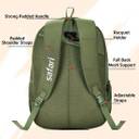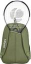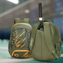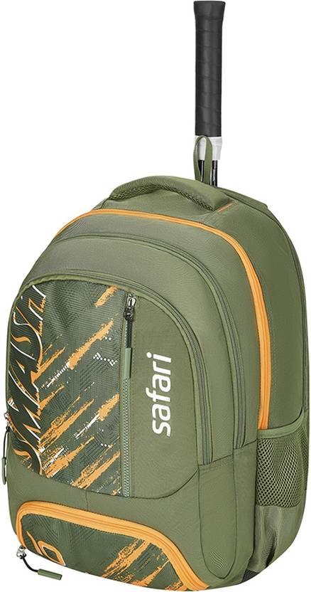 Racquet holder at the back. Locking mechanism provided to lock the racquet handle. Badminton, Tennis, Squash, Pickle ball racquets can be accommodated