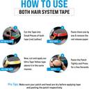 Peel the tape from the roll and cut to the desired length. Place the adhesive side toward the unit. Avoid touching the adhesive. Place the tape piece where desired on the hair system. Repeat as needed. When ready to apply to the scalp, peel off the remaining color liner pieces. For easier application, spray Just-Rite Positioning Spray over the adhesive area. The amount sprayed will determine the amount of time available to adjust the unit (the more you spray, the longer you have until the adhesive grabs). Press the hair system firmly onto the scalp, taking care not to move it in the process.