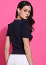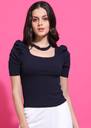 Casual Puff Sleeves Solid Women Dark Blue Top