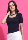 saffe Casual Solid Women Dark Blue Top