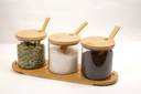 Glass jars are a must-have for modern homes and kitchens, with lids, spoons and trays, perfect for home use. The kit comes with a beautiful wooden tray, and all three seasoning cans can be placed in it, which is a practical and beautiful decoration. Perfect storage of seasonings / condiments, snacks, sugar, pepper, beans, salt, etc. On your counter for cooking, you are at your fingertips.