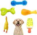 Introducing the Sage Square Squeaky Toy Combo for Dogs, a carefully curated set of durable and engaging toys designed to provide endless fun and stimulation for your furry friend. This combo is the ultimate solution for pet owners who want to keep their dogs entertained, active, and healthy. With a variety of shapes, colors, and textures, these toys are perfect for interactive play, helping to strengthen the bond between you and your pet while also promoting their physical and mental well-being. Durable Construction: At Sage Square, we understand that dogs can be tough on their toys, which is why this squeaky toy combo is made from high-quality, chew-resistant rubber. The durability of these toys ensures they can withstand the rigors of daily play, whether your dog is a gentle chewer or a vigorous tug-of-war competitor. The sturdy construction means these toys are built to last, providing your dog with long-lasting entertainment and satisfaction. The rubber material is designed to be resilient, bouncing back into shape after every chew, ensuring the toys remain fun and functional over time. Safe and Non-Toxic: Safety is a top priority when it comes to pet products, and the Sage Square Squeaky Toy Combo is no exception. These toys are crafted from non-toxic, BPA-free rubber, making them completely safe for your dog to chew on. The materials used in these toys are carefully selected to ensure they do not contain any harmful chemicals, so you can have peace of mind knowing that your dog is playing with safe, healthy toys. The non-toxic rubber also helps protect your dog’s teeth and gums, providing a safe outlet for their natural chewing instincts. Interactive Play: Dogs thrive on interaction, and the Sage Square Squeaky Toy Combo is designed to encourage just that. Whether it’s a game of fetch in the backyard, a spirited round of tug-of-war, or simply chasing after a bouncing toy, these squeaky toys are perfect for interactive play. Engaging in regular playtime with your dog helps strengthen your bond, builds trust, and provides essential physical exercise. The varied textures and sounds of these toys keep your dog engaged and excited, ensuring that playtime is always stimulating and fun. Variety of Shapes and Colors: One of the standout features of this squeaky toy combo is the variety of shapes and vibrant colors included in the set. Each toy is uniquely designed to capture your dog’s attention, with bright colors that appeal to their natural curiosity. The different shapes offer various textures and challenges, stimulating your dog’s senses and encouraging them to explore and play. This variety helps prevent boredom, as your dog can enjoy a new experience with each toy in the set. The assortment of designs also makes these toys suitable for different types of play, from chewing to fetching to squeaking. Squeaky Fun: Dogs love squeaky toys, and each toy in this combo features an embedded squeaker that produces a playful sound when bitten. The squeaky noise excites your dog and taps into their natural hunting instincts, making playtime more interactive and enjoyable. The sound of the squeaker provides instant feedback, rewarding your dog for biting and engaging with the toy. This auditory stimulation keeps your dog interested and entertained, reducing the likelihood of boredom and destructive behavior. The squeakers are securely embedded within the toys, ensuring they remain functional even after extended play. Teething Relief: For teething puppies, these squeaky toys offer much-needed relief. The rubber material is gentle on your dog’s teeth and gums, providing a satisfying chew experience that helps soothe sore gums. Chewing on these toys not only alleviates discomfort but also promotes healthy dental hygiene. The textured surface of the toys helps massage the gums and remove plaque and tartar buildup, contributing to your dog’s overall oral health. These toys are a great way to encourage healthy chewing habits from an early age, setting the foundation for strong teeth and gums as your dog grows. Easy to Clean: Maintaining your dog’s toys is essential for their health and hygiene, and the Sage Square Squeaky Toy Combo is designed with easy cleaning in mind. The rubber material is waterproof and can be easily cleaned with warm water and mild soap. Simply rinse the toys after playtime to remove dirt and saliva, and they’ll be ready for the next round of fun. The quick-drying nature of the rubber ensures that the toys don’t retain moisture, preventing the growth of bacteria and mold. This easy maintenance routine helps keep the toys hygienic and safe for your dog to use repeatedly. Perfect for All Dog Sizes: Whether you have a small Chihuahua, a medium-sized Beagle, or a large Golden Retriever, the Sage Square Squeaky Toy Combo is suitable for dogs of all sizes. The toys are designed to be the right size for a wide range of breeds, ensuring that every dog can enjoy playing with them.