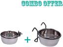 Sage Square Stainless Steel Birds Coop Cup Feeder Bowl with Clamp Holder, 200 ml and Stainless Steel Birds Coop Cup Feeder Bowl with Hook Holder, 200 ml (Pack of 2) Round Stainless Steel Pet Bowl (200 ml Steel)