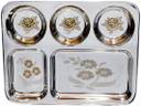 Sager Stainless Steel Lunch/Dinner Plate/Bhojan Thali 5 in 1 Compartments with Mirror Finish, Floral Laser Design in All compartments Dinner Plate