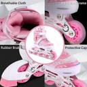 These skates offer versatility and cater to skaters of all skill levels from beginners to professionals. Featuring adjustable sizing, they can grow with your little one which ensures years of enjoyment even as their feet grow. Furthermore, they conveniently convert from trainer skates to inline skates, accommodating different skill levels. With the ability to switch between three-wheel and four-wheel configurations, these skates adapt to your preferences and abilities.