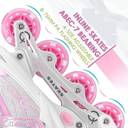 Boasting a vibrant colour block pattern, these skates look stylish while enhancing visibility. The incorporation of cool neon lights on the wheels adds an extra element of fun and safety during twilight hours. The vibrant design adds flair to your skating experience and promotes visibility, reducing the risk of accidents.