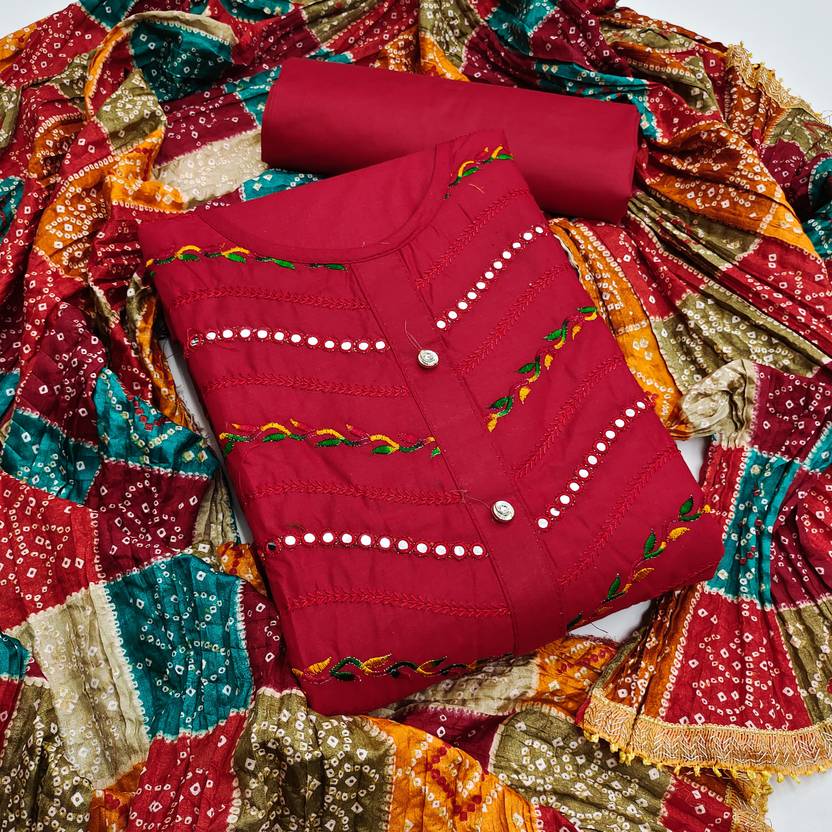 GANESHA TRENDZ enterprise Featuring a beautiful Pure cotton salwar suit fabric. You will look fabulous in this salwar suit. This suit is enriched with lovely work which will make you look awesome. It comes with perfectly matched unstitched cotton fabric with dupatta. which can be stitched as per your needs. Along with good looks, this suit is comfortable to wear and easy to care. It is a multi purpose suit worn on multiple occasions like casual outings, office, regular social gatherings and other homely events. Pair it with other accessories and see how beautiful and complete you look.