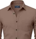 Presenting a clean and minimal look, this men's casual shirt features a solid pattern that provides a simple and understated appearance. Moreover, this pattern ensures a neat and polished style while maintaining subtle charm, ideal for those who prefer a straightforward look without distractions.