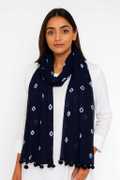 Add a graceful touch to your ethnic look with this elegant black chunari-printed dupatta, crafted from lightweight and breathable chiffon fabric. Adorned with traditional diamond-shaped chunari prints in subtle grey tones, this dupatta brings a perfect balance of tradition and trend. Finished with delicate black tassels with golden beads, it effortlessly elevates any simple outfit.