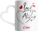 SAHU KRAFT Lisa Love You Always Cute Design Printed, Lisa Coffee Gift To Anyone Special You Love ,Girlfriend, Lover , Valentine day Gift White Heart Handle Ceramic Coffee Mug (330 ml)