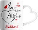 SAHU KRAFT Subhash Love You Always Cute Design Printed, Subhash Coffee Gift To Anyone Special You Love Gift To Anyone Special You Love, Boyfriend, Lover White Heart Handle Ceramic Coffee Mug (330 ml)
