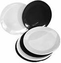 SAHU TRADERS Pack of 6 Plastic 3 white and 3 black Plastic Round Plate 11 inch Dinner Plate (Pack of 6, Microwave Safe)