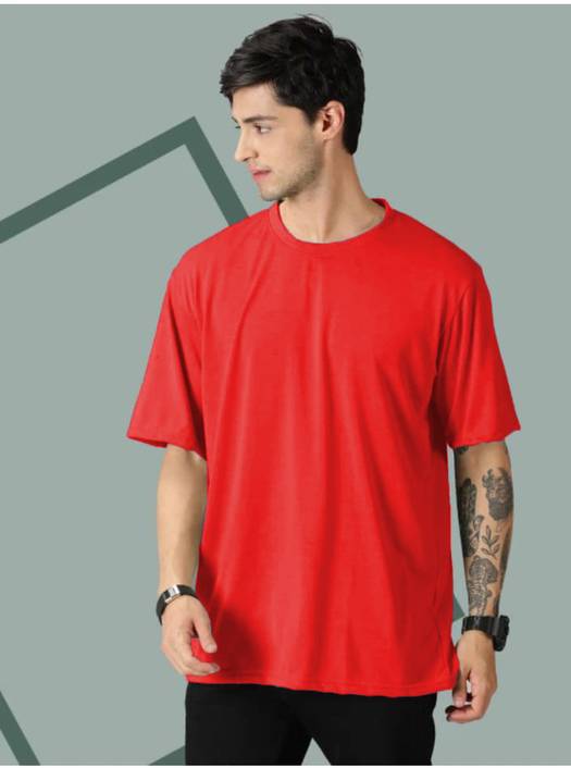 Sahuone Solid Men Round Neck Red T-Shirt