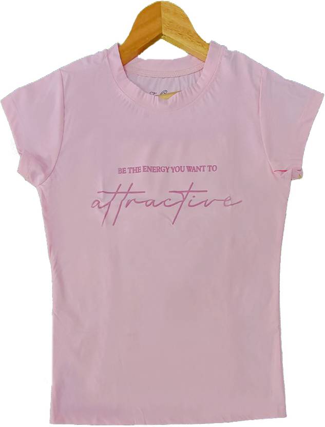 Women Printed Round Neck Cotton Blend Pink T-Shirt