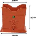garden tulasi or tulsi pot terracotta color planter lord Ganesh, Shiva, Lakshmi, Krishna on 4 sides of the planter made from 100 percent virgin plastic - lasts many years even in sun UV stabilized plastic planter thick walled, don't break easily tulasi or tulsi planter garden is the leading provider of plastic pots and accessories used in home gardens .easily stock-able, with large drain holes and are cost effective for the grower. High quality branded plastic planters. Share Text: Catalog Name:*Graceful Flower Pots* Material: Plastic Shape: Square Type: Potariable