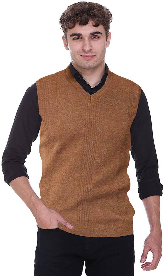 Mens Winter V Neck Half Sleeves Woolen Multicolor Sweater