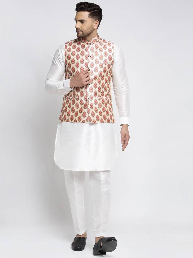 kaifoo Men Pure Silk Kurta Pyjama Ethnic Jacket Set