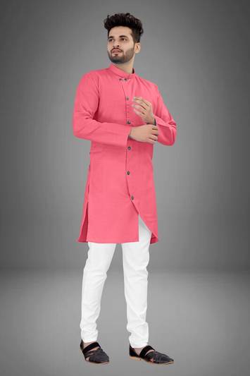 SAIFOO Men Solid Asymmetric Kurta (Orange)
