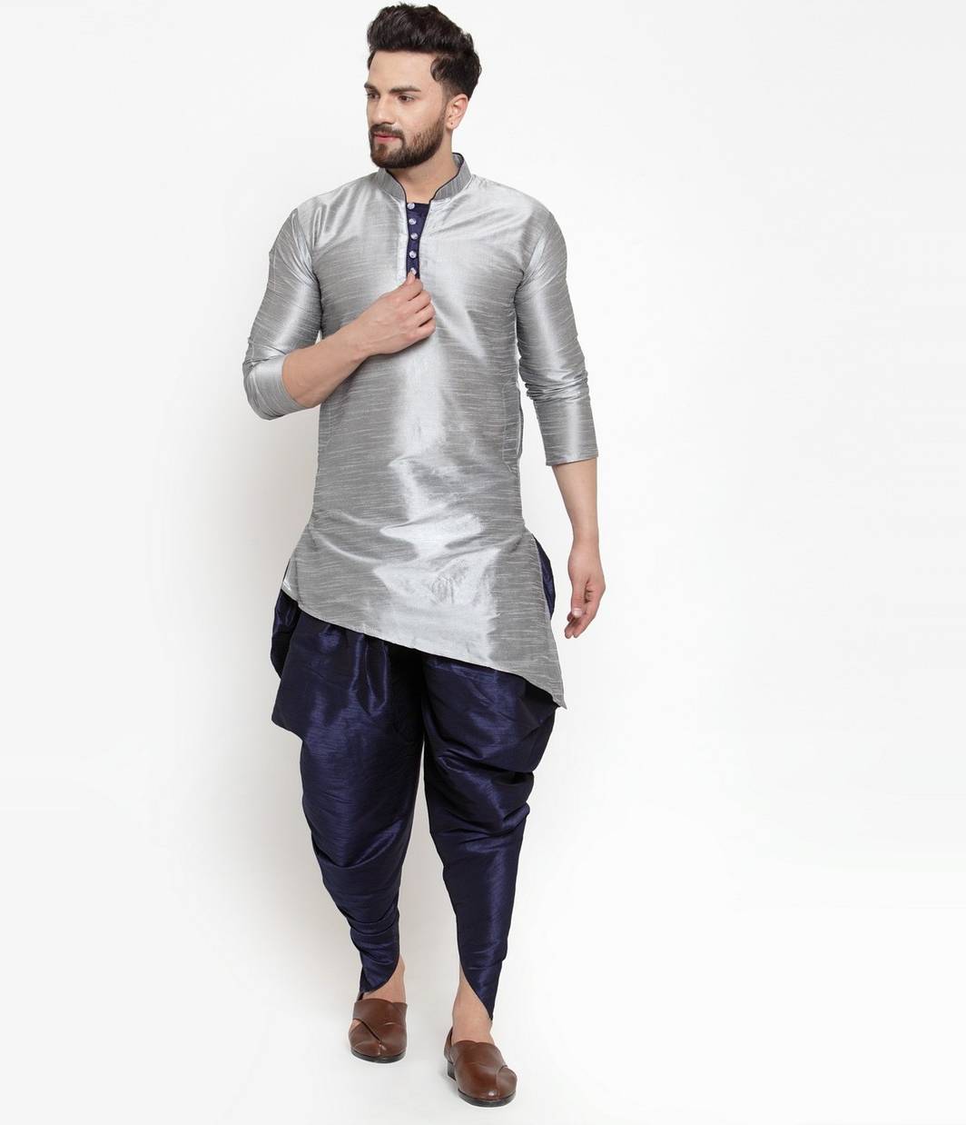 Men Solid Cotton Blend Asymmetric Kurta (Multicolor)