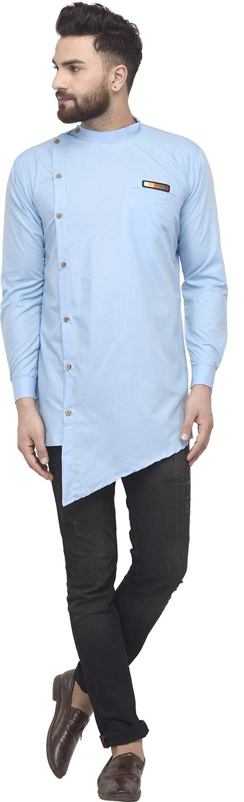 SAIFOO Men Solid Asymmetric Kurta (Blue)