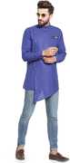 SAIFOO Men Solid Asymmetric Kurta (Blue)